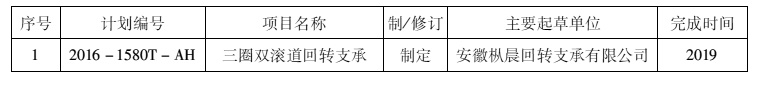 项目计划340项,制定279项,修订61项;产品类标准308项,工程建设标准6项,节能与综合利用标准11项,安全生产标准7项,标准样品8项。本次计划中滚动轴承行业1项,如下表所示:
